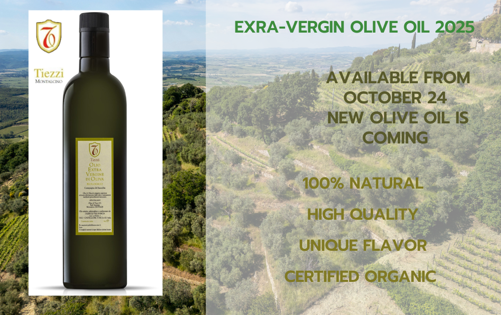 The new olive oil will be available from October 24th. Authentic flavor that let you recognize the typical aromas and savor of Montalcino.